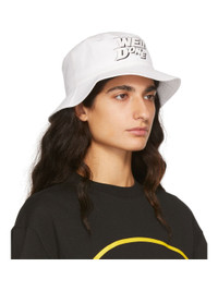 Twill bucket hat in white. Logo bonded in black and white at face. · Quilted brim · Satin lining Supplier color: White 68% polyester, 29% rayon. 3% polyurethane. Made in South Korea 221327F015012