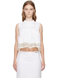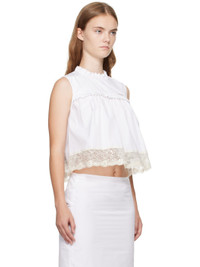 Cotton poplin blouse. Gathering and ruffled trim throughout. · Round neck · Logo hardware at chest · Sequinned lace trim at hem · Hook-eye fastening at back collar Supplier color: White 100% cotton. Made in South Korea 242327F111000