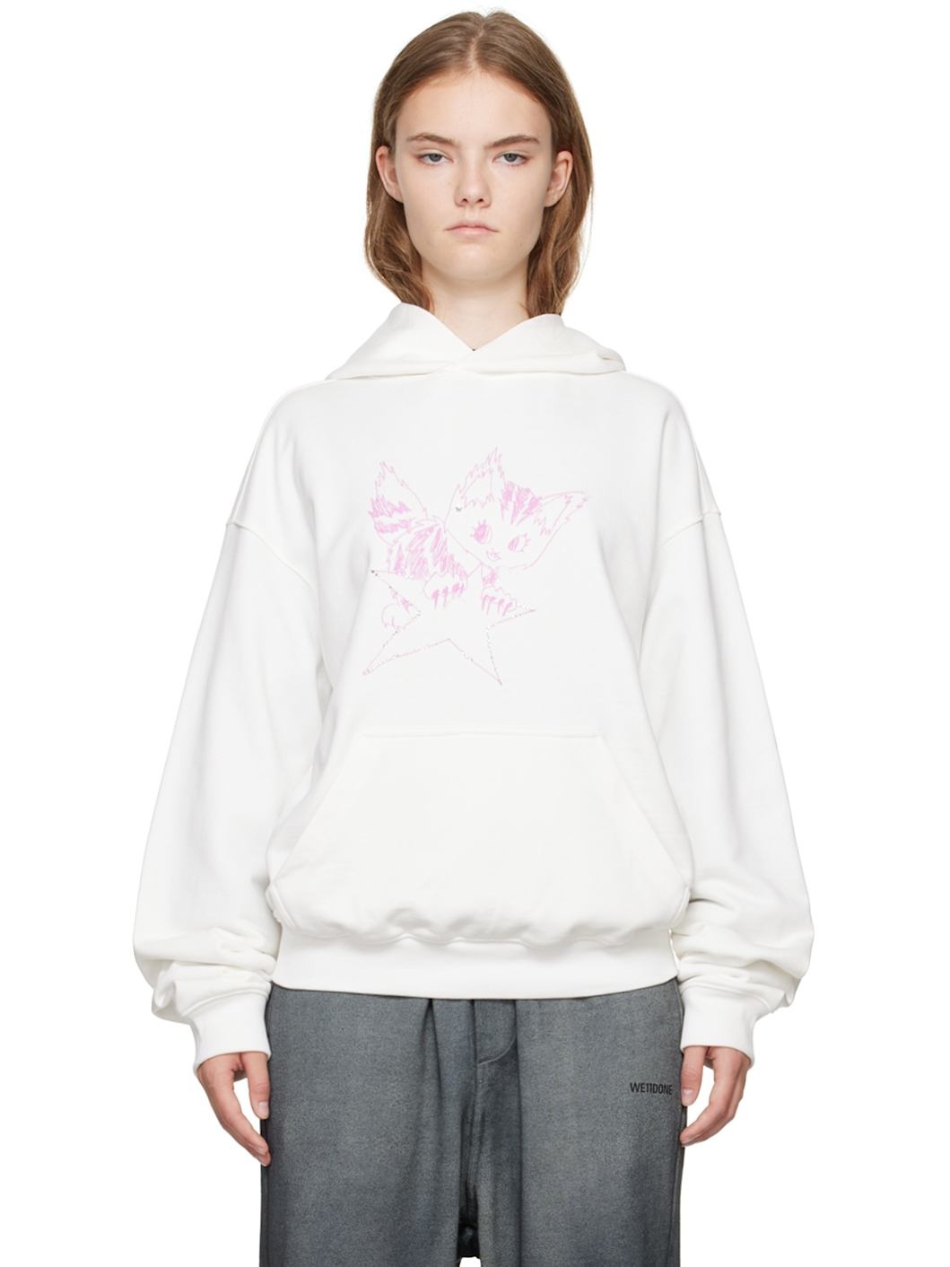 French terry hoodie. · Printed graphic with crystal-cut detailing at front · Kangaroo pocket · Rib knit hem and cuffs · Dropped shoulders · Logo embroidered at back hem Supplier color: Ivory 100% cotton. Made in South Korea 242327F097002