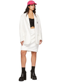 Polyester satin skirt. · Darts at front · Graphic sequin detailing · Fully lined Supplier color: White Body: 100% polyester. Lining: 60% rayon, 40% polyester. Made in South Korea 221327F090013