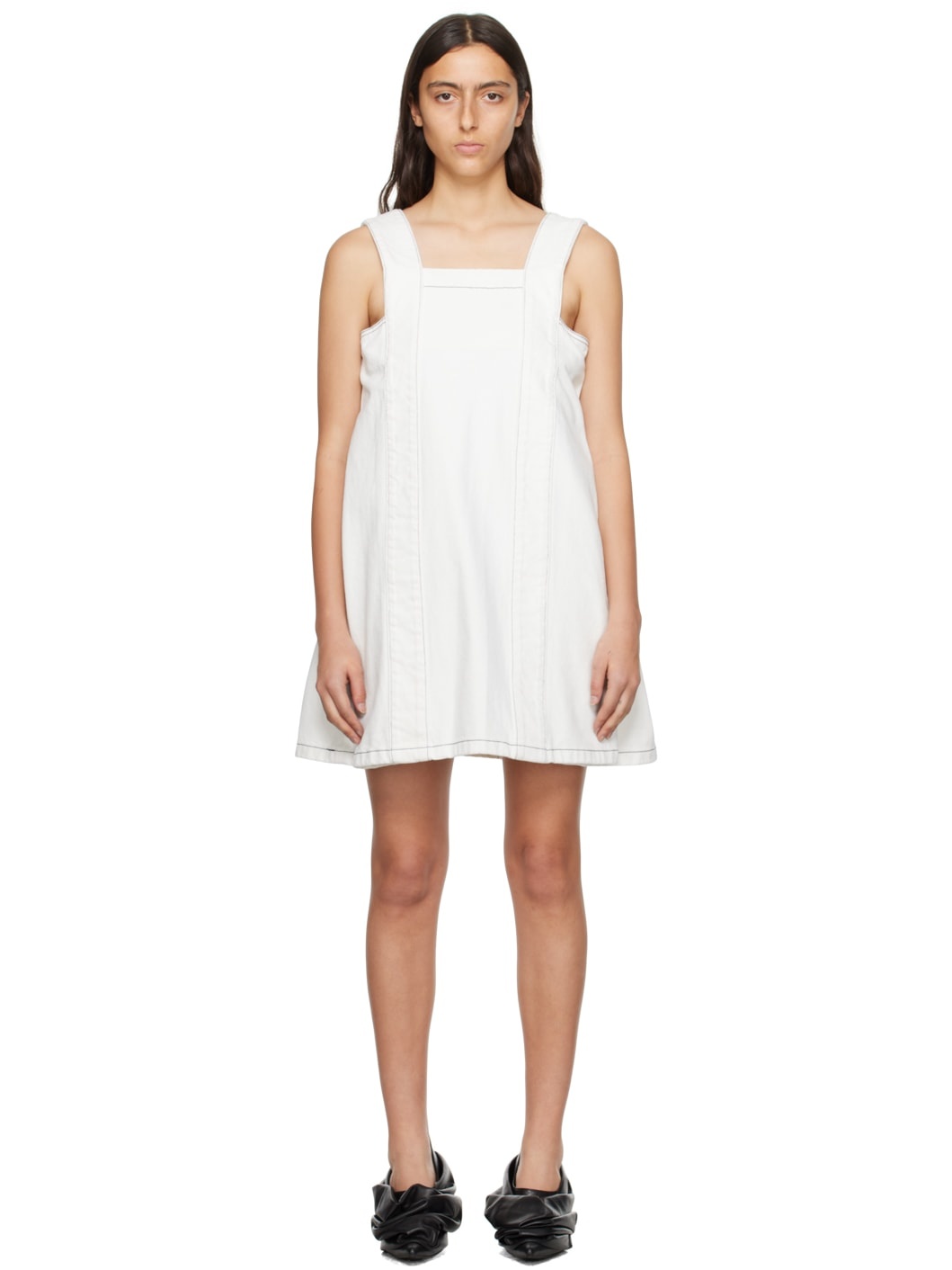 Non-stretch denim dress. · Paneled construction · Square neck · Adjustable button tabs at chest · Contrast stitching in black Supplier color: Ice 100% cotton. Made in South Korea 232327F052000