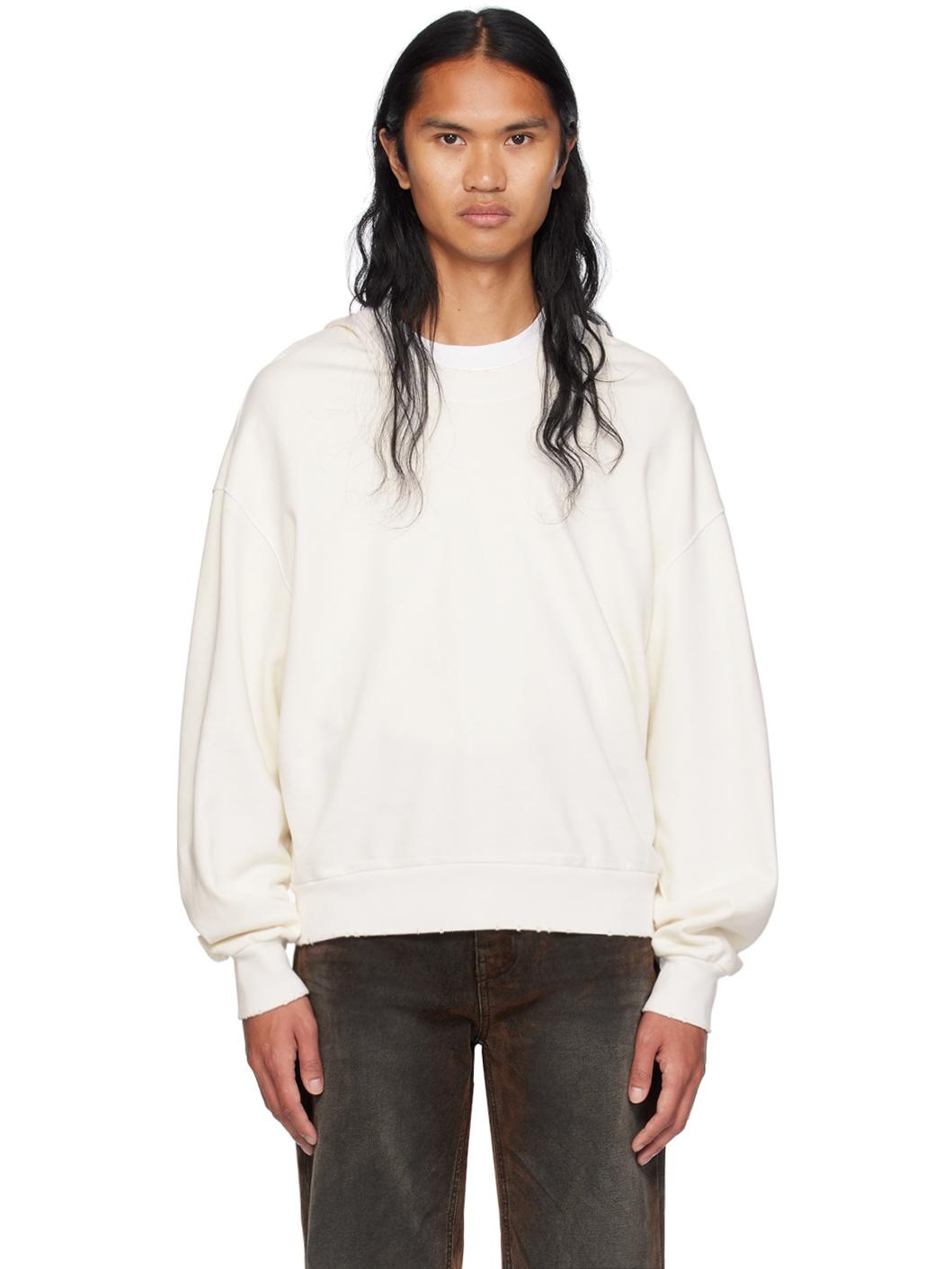 French terry hoodie. Distressing and piping throughout. · Logo embroidered at hood · Rib knit trim at hood, hem, and cuffs · Dropped shoulders · Graphics printed at back Supplier color: White 100% cotton. Made in South Korea 242327M202006