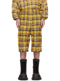 Yellow Crinkled Check Shorts