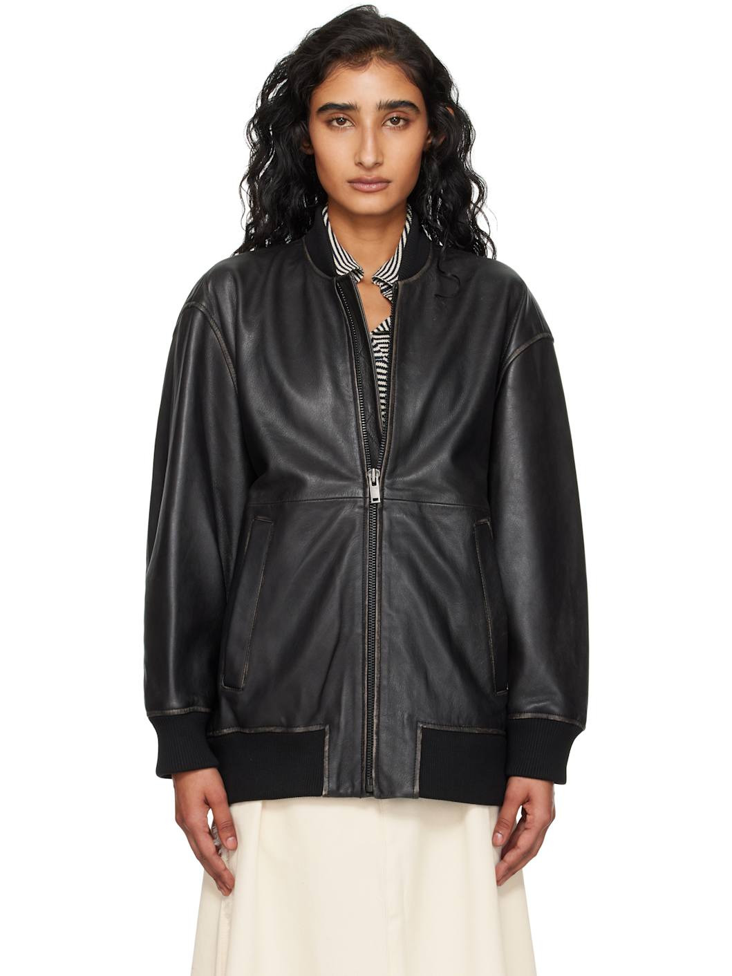 Grained nappa lambskin bomber jacket. · Fading throughout · Paneled construction · Rib-knit stand collar, hem, and cuffs · Zip closure · Welt pockets · Dropped shoulders · Stretch satin lining Supplier color: Black Body: 100% lambskin. Lining: 97% polyester, 3% elastane. Made in India 252183F064001