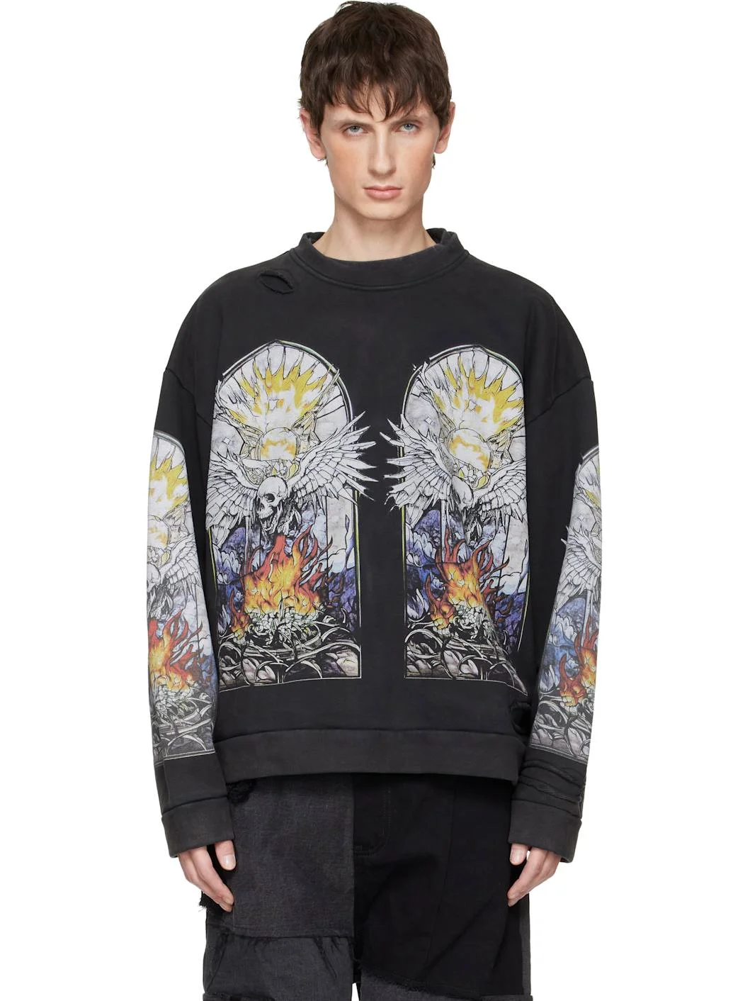 French terry sweatshirt. · Fading, distressing, and printed graphics throughout · Crewneck · Dropped shoulders Supplier color: Coal 100% cotton. Made in Turkey 252389M204024