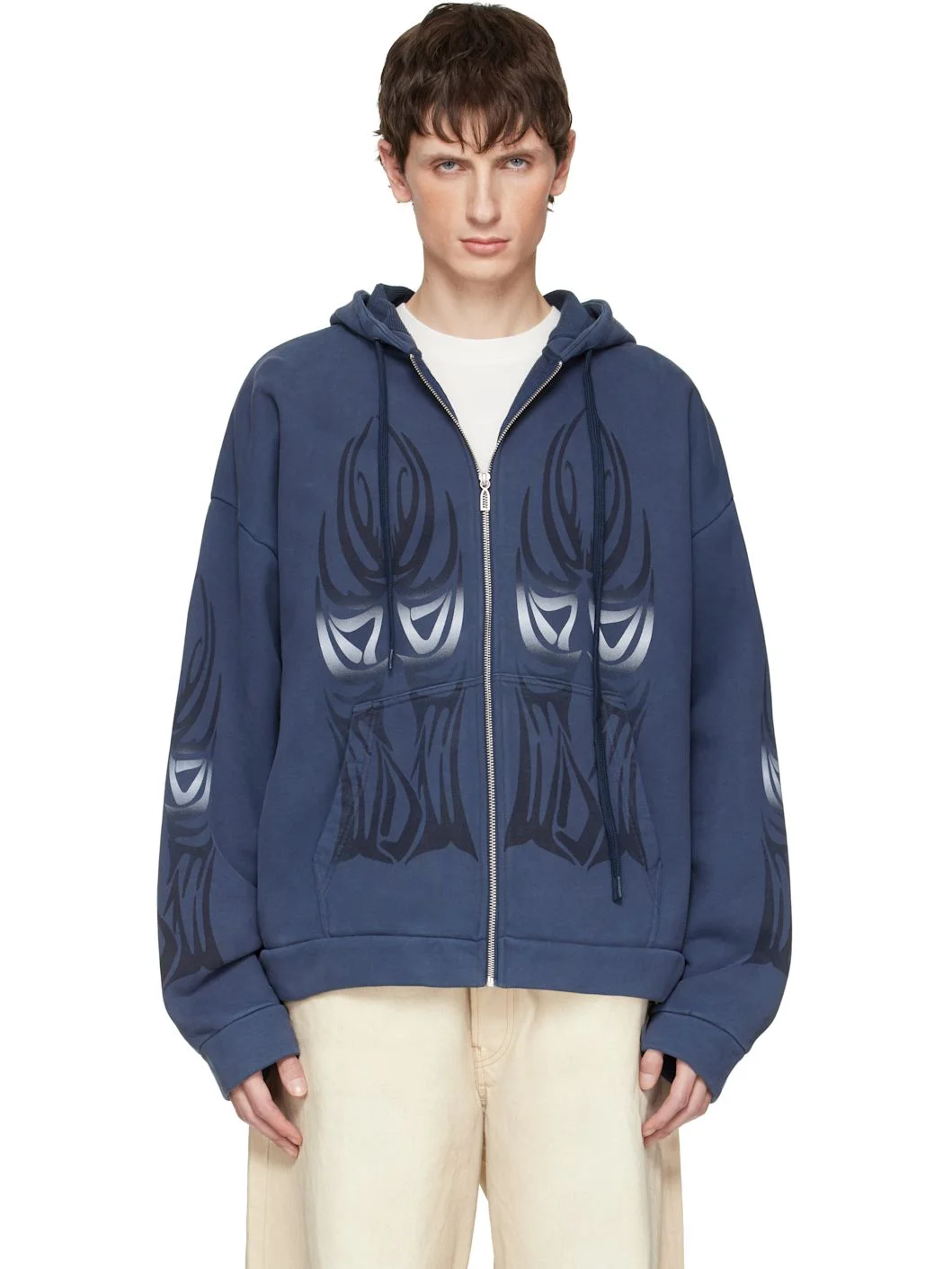 French terry hoodie. · Fading throughout · Drawstring at hood · Zip closure · Graphics printed at front and sleeves · Patch pockets at front · Dropped shoulders Supplier color: Coal 100% cotton. Made in Turkey 252389M202026
