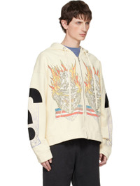 French terry hoodie. · Graphics printed throughout · Drawstring at hood · Zip closure · Patch pockets at front · Dropped shoulders · Graphic patch at sleeves Supplier color: Ivory 100% cotton. Made in Turkey 252389M202045