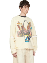 French terry sweatshirt. · Distressing throughout · Crewneck · Graphics and text printed at front and back · Dropped shoulders · Exposed waffle-knit underlay at sleeves Supplier color: Cream 100% cotton. Made in Turkey 252389M204025