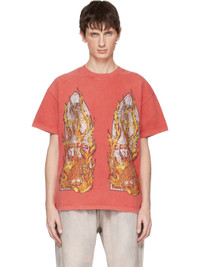 Cotton jersey T-shirt. · Fading throughout · Rib-knit crewneck · Printed logo graphics with rhinestones at front and back · Cropped hem Supplier color: Ruby 100% cotton. Made in Turkey 252389M213057