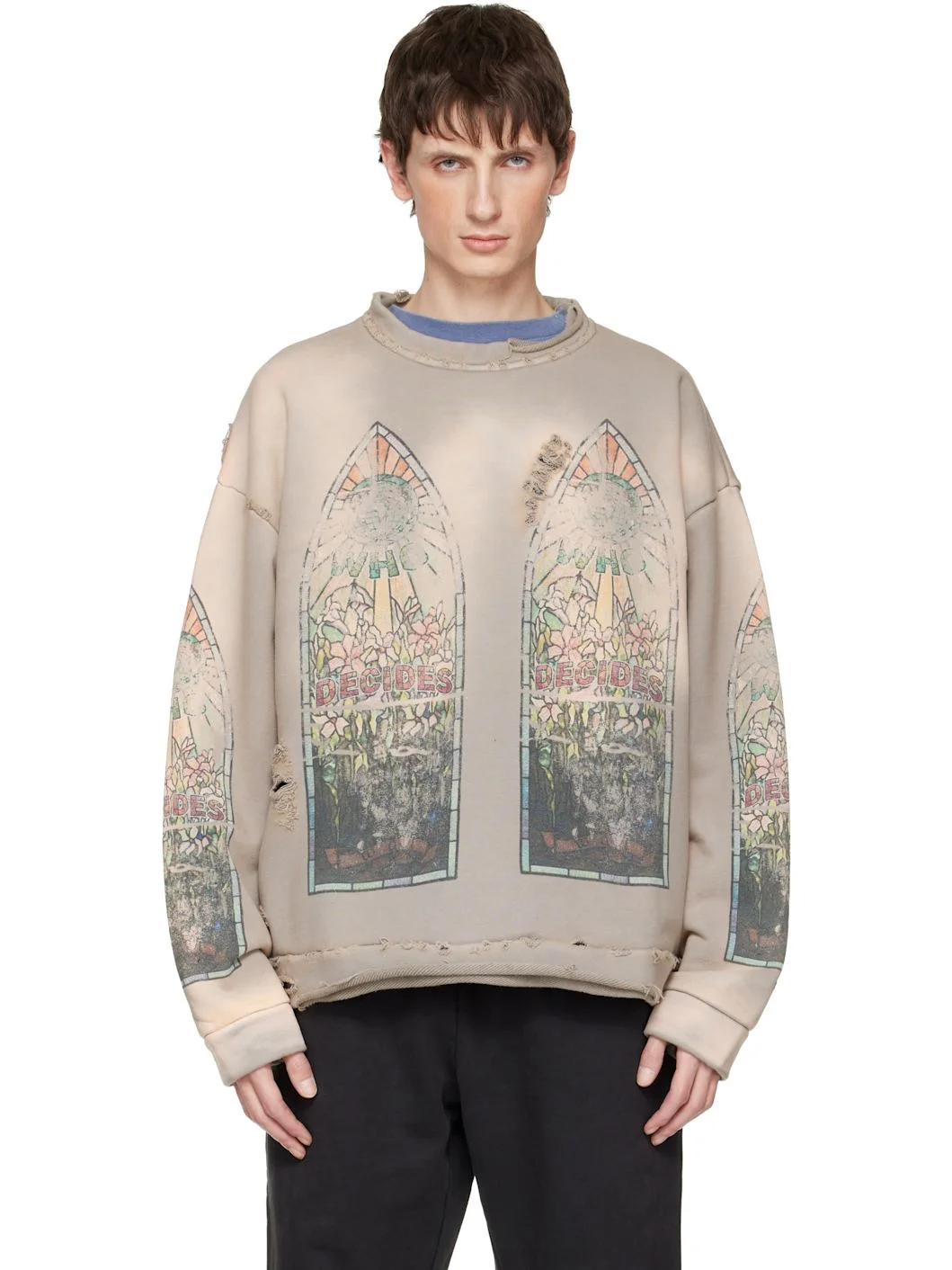 French terry sweatshirt. · Fading, distressing, and printed graphics throughout · Crewneck · Dropped shoulders Supplier color: Vintage grey 100% cotton. Made in Turkey 252389M204031