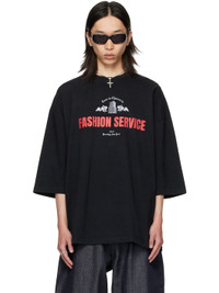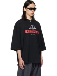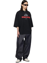 Cotton jersey T-shirt. · Rib-knit crewneck · Graphic, text, and logo printed at chest · Dropped shoulders · Text and logo printed at back Supplier color: Black 100% cotton. Made in United States 252232M213192