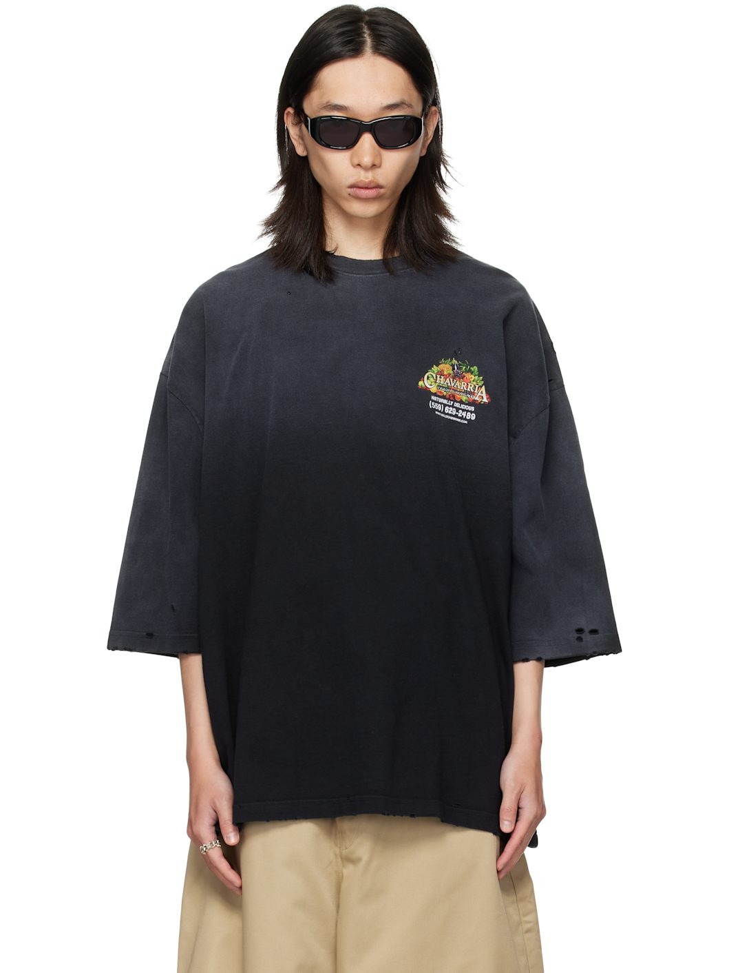 Cotton jersey T-shirt. · Fading and subtle distressing throughout · Rib-knit crewneck · Logo graphic and text printed at chest and back · Dropped shoulders Supplier color: Black 100% cotton. Made in United States 252232M213188