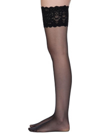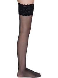 Pair of thigh-high semi-sheer stretch nylon jersey socks. · 20 denier nylon · Anti-slip silicone bands at elasticized lace cuffs · Reinforced toes Supplier color: Black 87% polyamide, 13% elastane. Made in Australia 252017F076042