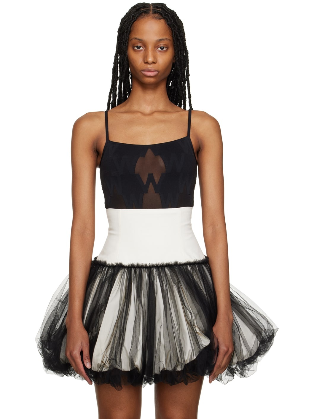 Sheer stretch ECONYL® recycled nylon mesh bodysuit. Jacquard logo pattern throughout. · Square neck · Press-stud fastening at bottom · Fixed elasticized shoulder straps · Partially lined Supplier color: Black 87% polyamide, 13% elastane. Made in Slovenia 231017F358028