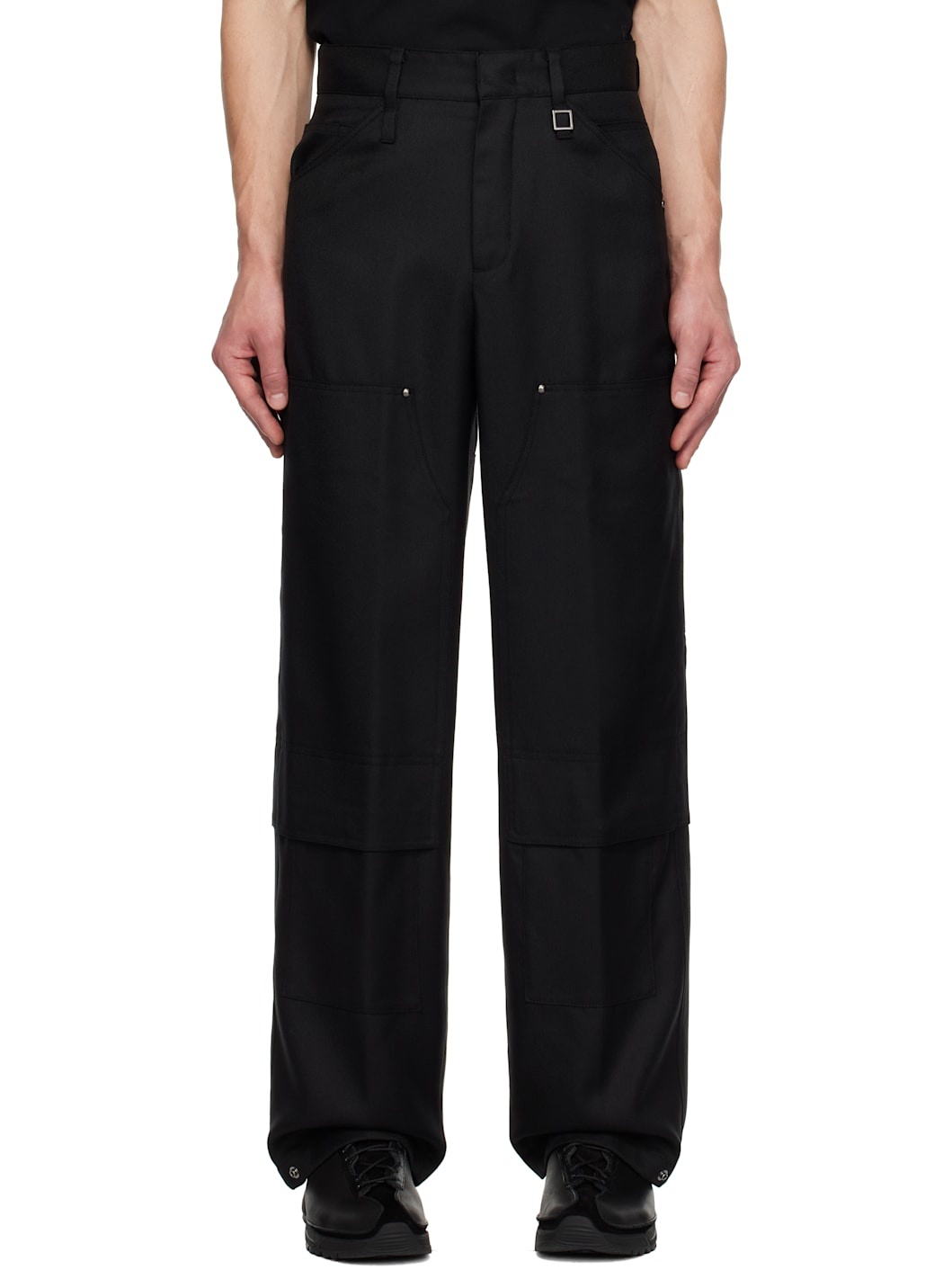 Wool twill cargo pants. · Belt loops · Five-pocket styling · Zip-fly · Logo hardware at front · Flap pockets at front legs · Press-stud fastening at cuffs · Seam pocket at outseams Supplier color: Black 100% wool. Made in South Korea 242704M191007