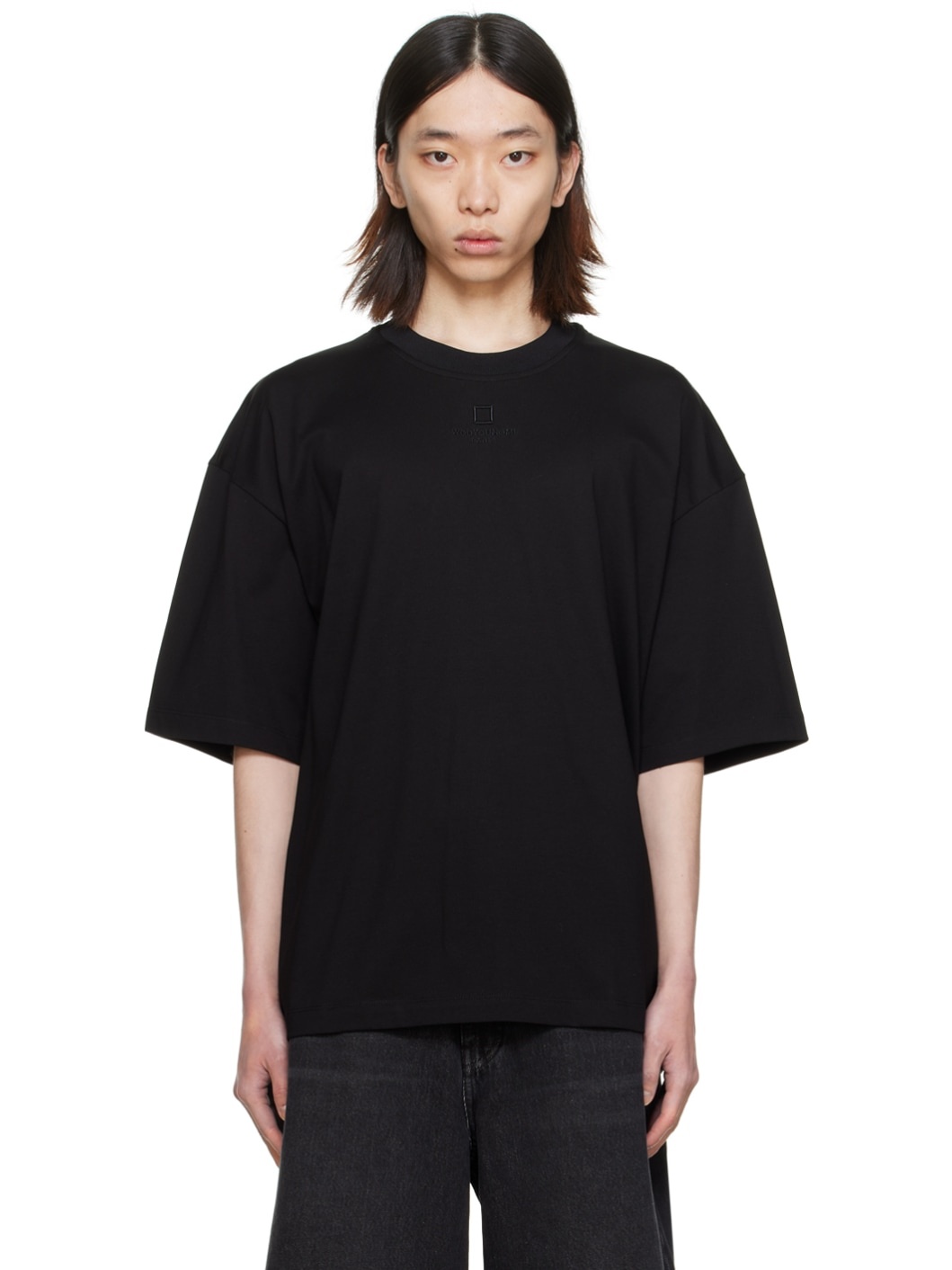 Cotton jersey T-shirt. · Rib knit crewneck · Logo embroidered at front · Vented side seams · Dropped shoulders · Logo plaque at back collar Supplier color: Black Body: 100% cotton. Trim: 97% polyester, 3% spandex. Made in South Korea 241704M213008