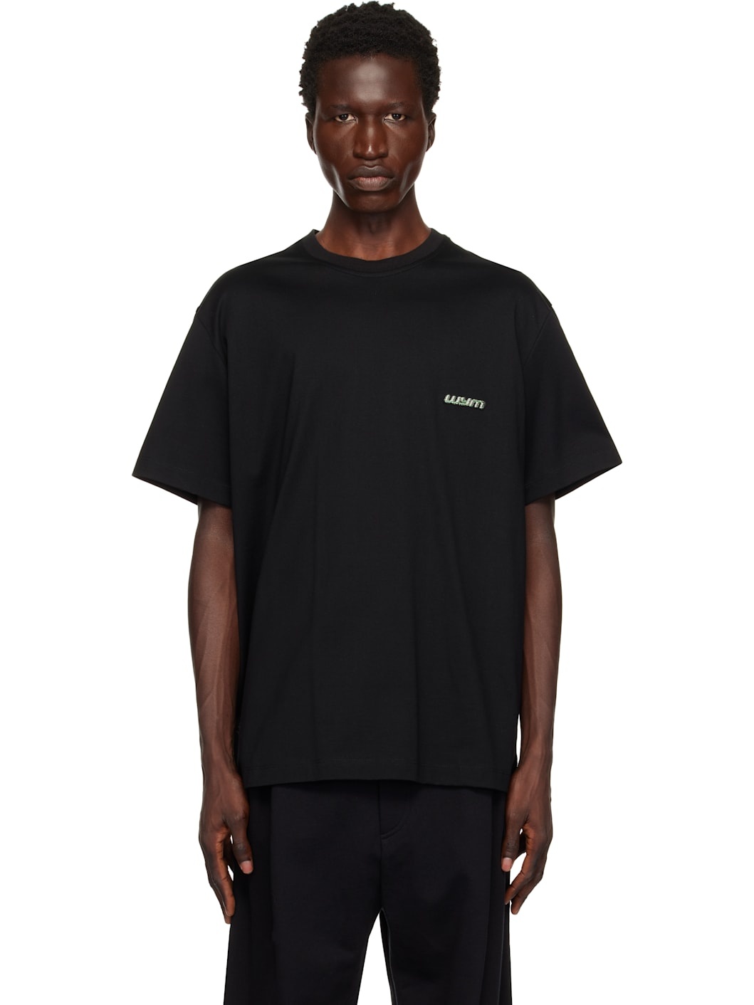 Cotton jersey T-shirt. · Rib-knit crewneck · Logo patch at chest · Vented side seams · Logo hardware at back collar · Printed graphic and crystal-cut text at back Supplier color: Black 100% cotton. Made in South Korea 242704M213010