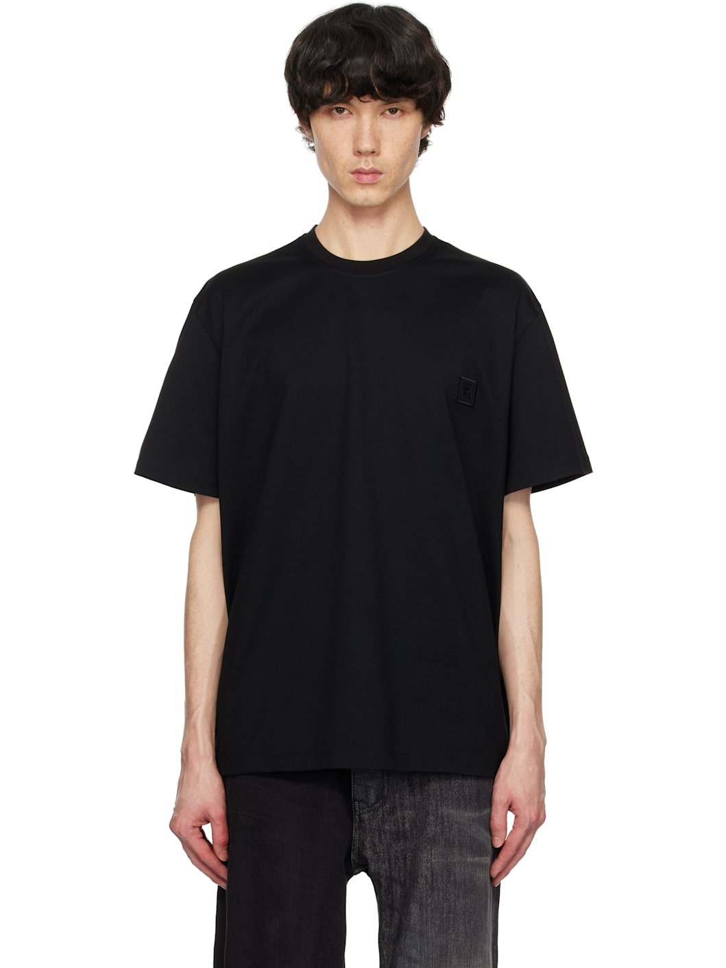 Cotton jersey T-shirt. · Rib-knit crewneck · Logo patch at chest · Vented side seams · Logo hardware at back collar · Iridescent logo bonded at back Supplier color: Black Body: 100% cotton. Trim: 66% cotton, 29% polyester, 5% spandex. Made in South Korea 251704M213017