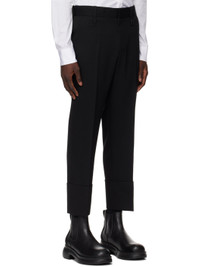 Wool twill trousers. · Belt loops · Four-pocket styling · Zip-fly · Logo plaque at front and back · Creased legs · Rolled cuffs Supplier color: Black 100% wool. Made in South Korea 241704M191011