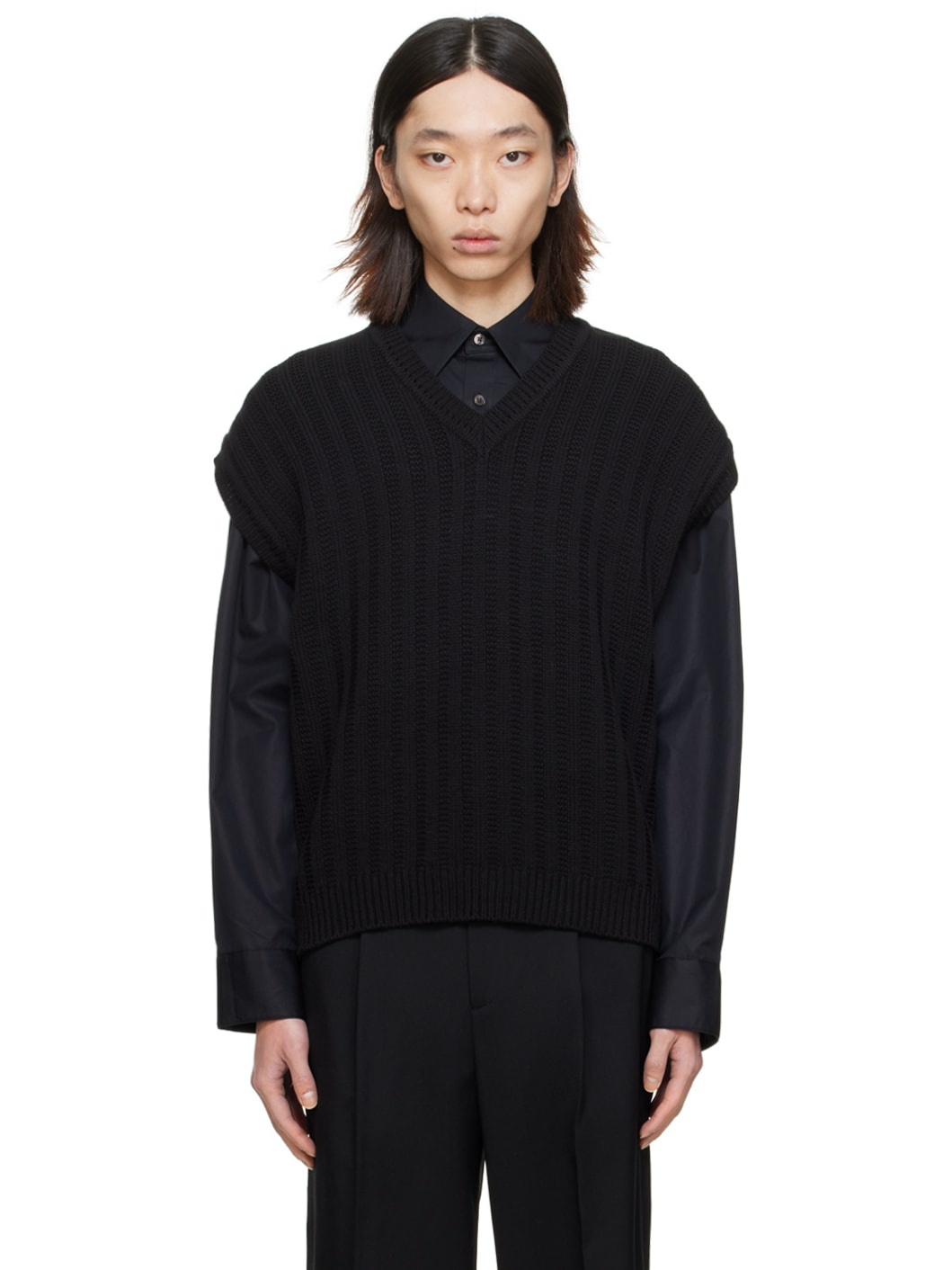 Rib knit cotton-blend vest. · V-neck · Logo hardware at back collar Supplier color: Black 87% cotton, 13% nylon. Made in South Korea 241704M206001