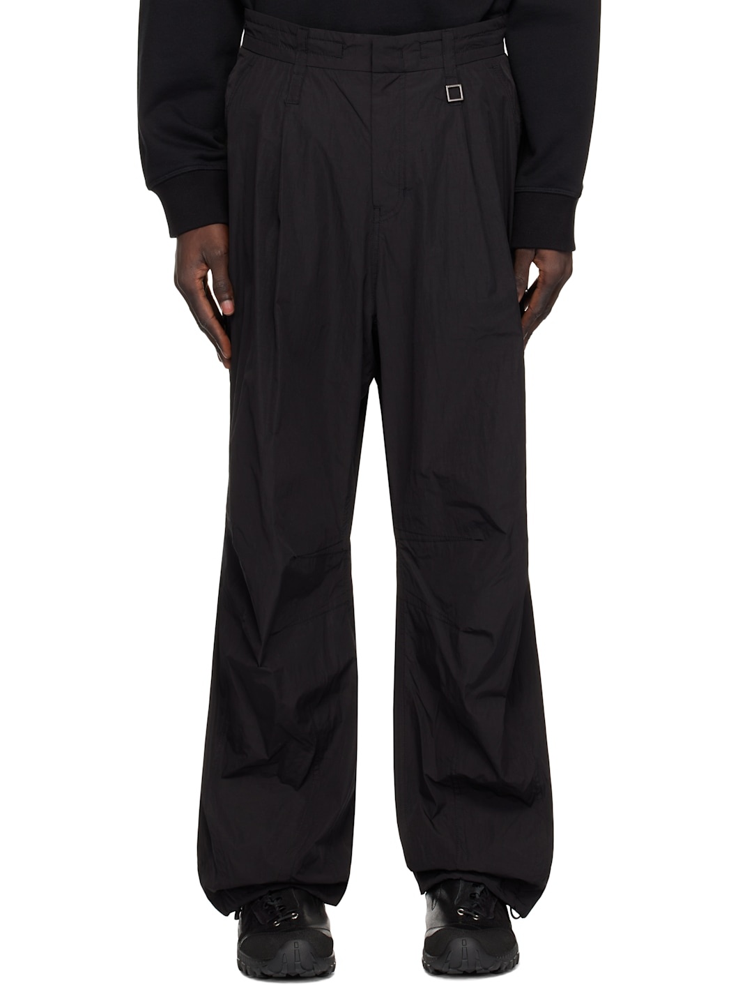 Wide-leg polyester-blend taffeta trousers. · Belt loops · Concealed drawstring at waistband · Four-pocket styling · Zip-fly · Logo hardware and pleats at front · Tucks at knees · Concealed bungee-style drawstring at cuffs · Patch pocket at outseam Supplier color: Black 46% polyester, 33% nylon, 21% cotton. Made in South Korea 242704M191006