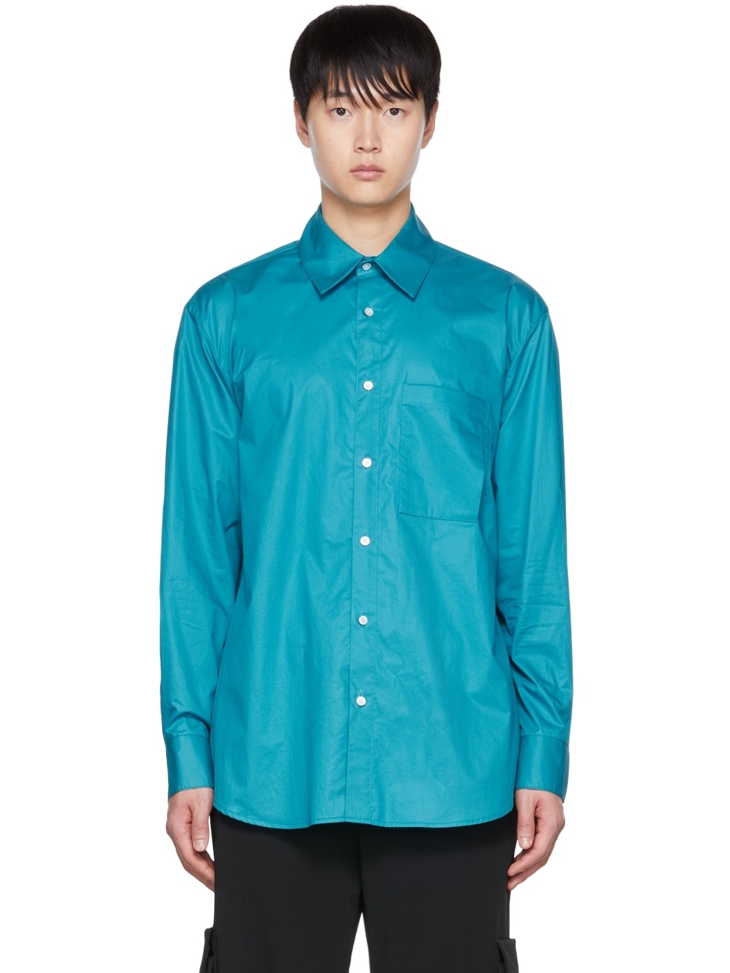 Cotton poplin shirt. · Spread collar · Button closure · Logo embroidered at patch pocket · Single-button barrel cuffs · Box pleat at back yoke · Shirttail hem · Logo-engraved gunmetal-tone hardware Supplier color: Fresh green 100% cotton. Made in South Korea 222704M192018