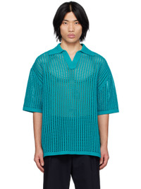 Open knit polo. · Open spread collar · Rib knit hem and cuffs · Logo hardware at back collar Supplier color: Blue 100% polypropylene. Made in South Korea 231704M212005
