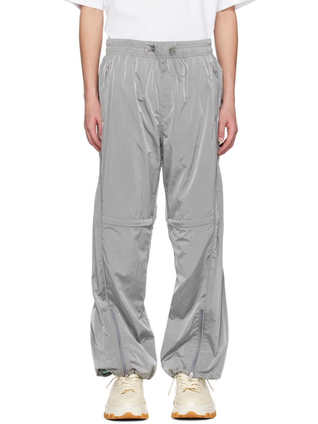 Reflective nylon taffeta track pants. · Paneled construction · Bungee-style drawstring at elasticized waistband · Three-pocket styling · Zip-fly · Zip vent at knees and cuffs · Bungee-style drawstring at cuffs · Full mesh lining Supplier color: Grey