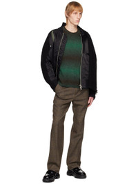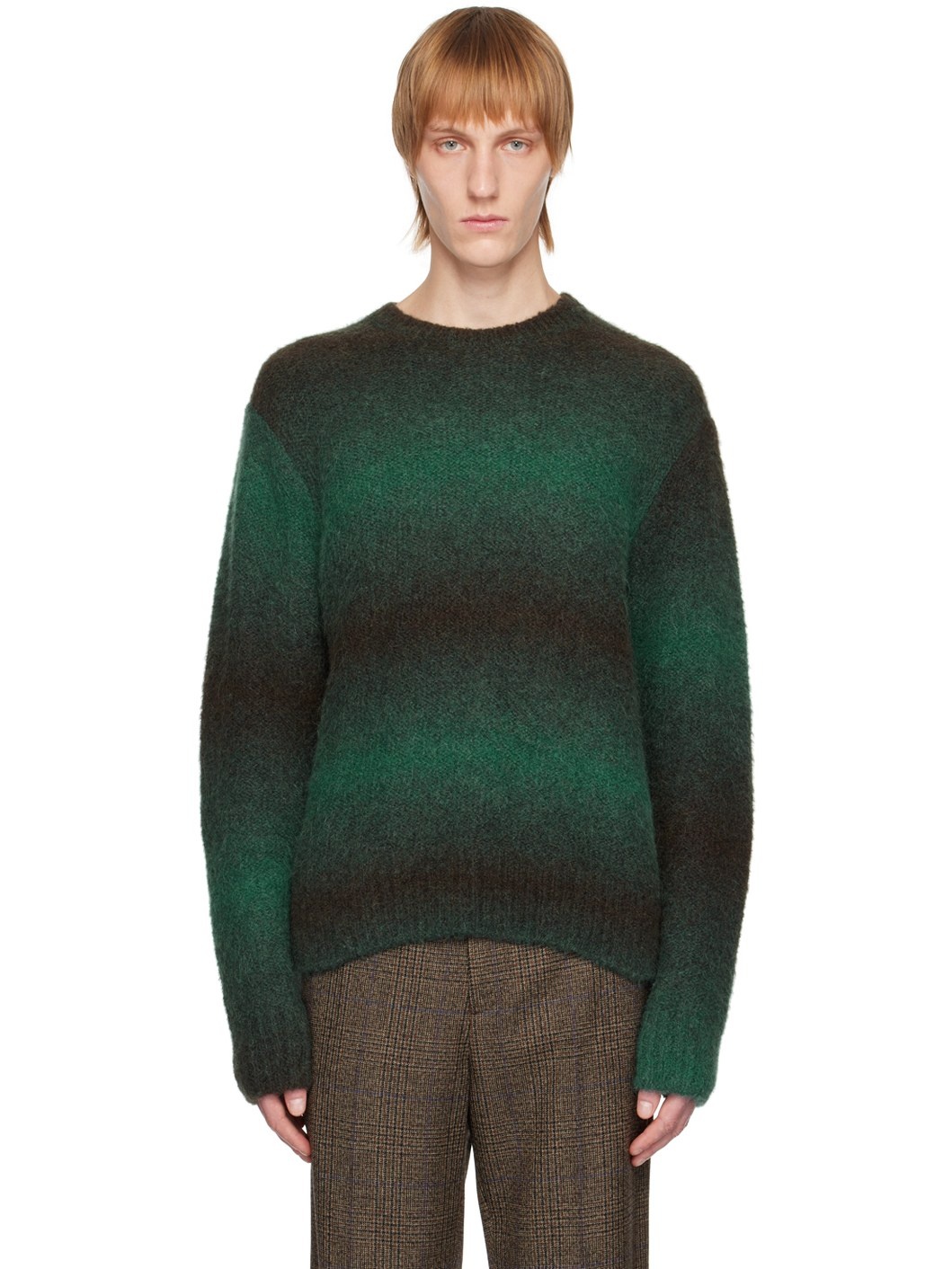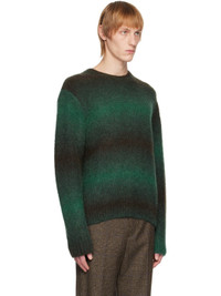 Brushed knit alpaca and nylon-blend sweater. Striped pattern throughout. · Rib knit crewneck, hem, and cuffs · Logo hardware at back collar Supplier color: Fresh green 63% alpaca, 37% nylon. Made in South Korea 222704M201006