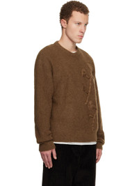 Brushed knit mohair- and wool-blend sweater. · Rib-knit crewneck, hem, and cuffs · Floral appliques at front · Logo hardware at back collar Supplier color: Camel 62% mohair, 28% nylon, 10% wool. Made in South Korea 252704M201001