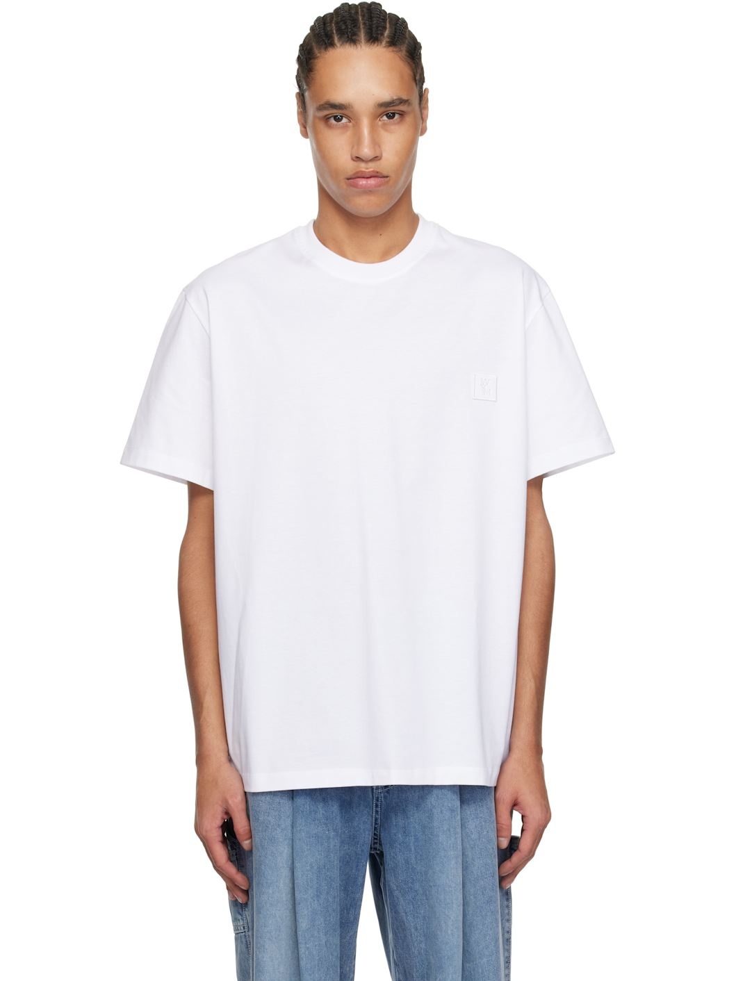 Cotton jersey T-shirt. · Rib-knit crewneck · Embroidered logo patch at chest · Vented side seams · Logo hardware at back collar · Logo and graphic printed at back Supplier color: White 100% cotton. Made in South Korea 251704M213024
