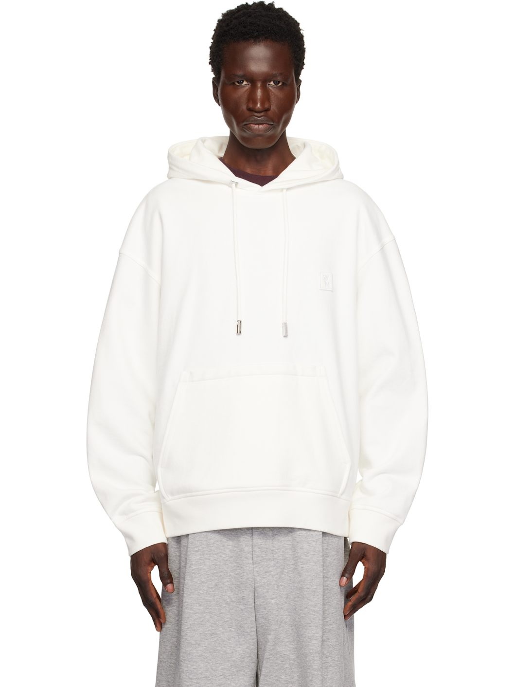 French terry hoodie. · Drawstring at hood · Logo patch at chest · Kangaroo pocket · Rib-knit hem and cuffs · Logo hardware at back collar · Graphic and text bonded at back · Logo-engraved silver-tone hardware Supplier color: White 100% cotton. Made in South Korea 242704M202008