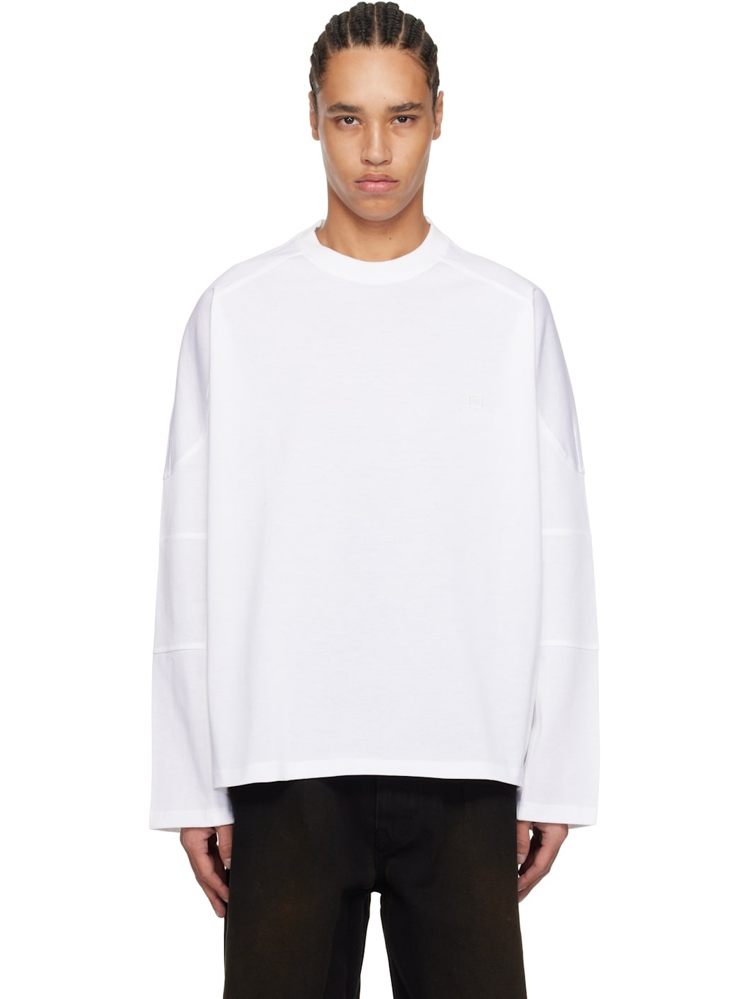 White Shoulder Cut Long Sleeve T-shirt