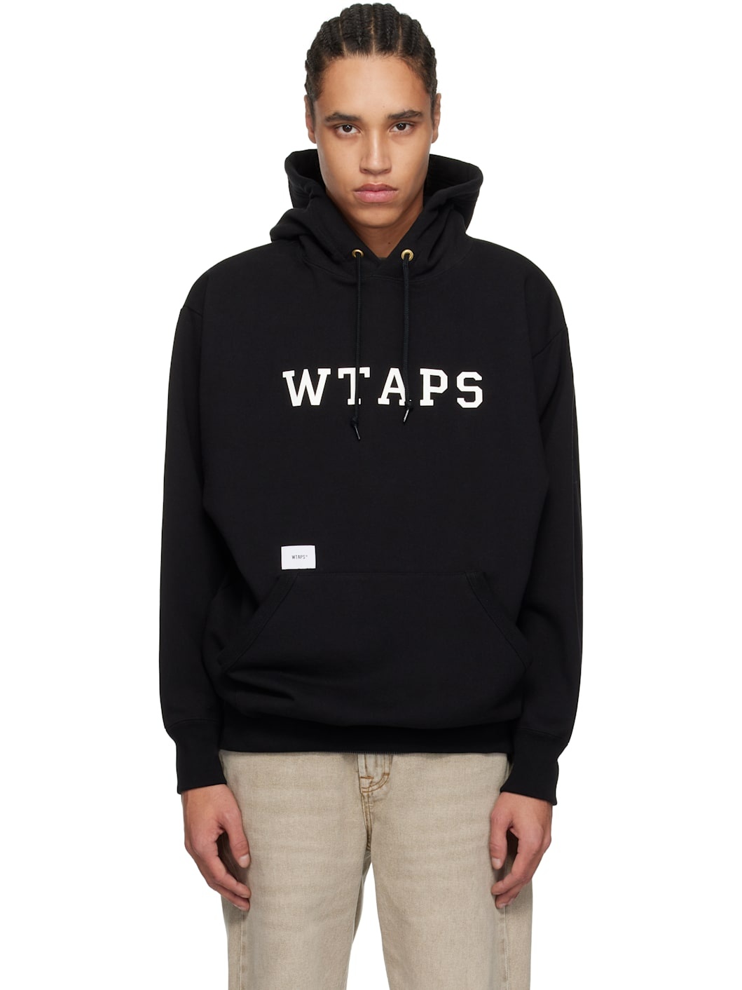 French terry hoodie. · Drawstring at hood · Logo printed at chest · Logo patch at front · Kangaroo pocket · Logo flag at side seam · Rib-knit hem and cuffs · Dropped shoulders Supplier color: Black 100% cotton. Made in Japan 252241M202001