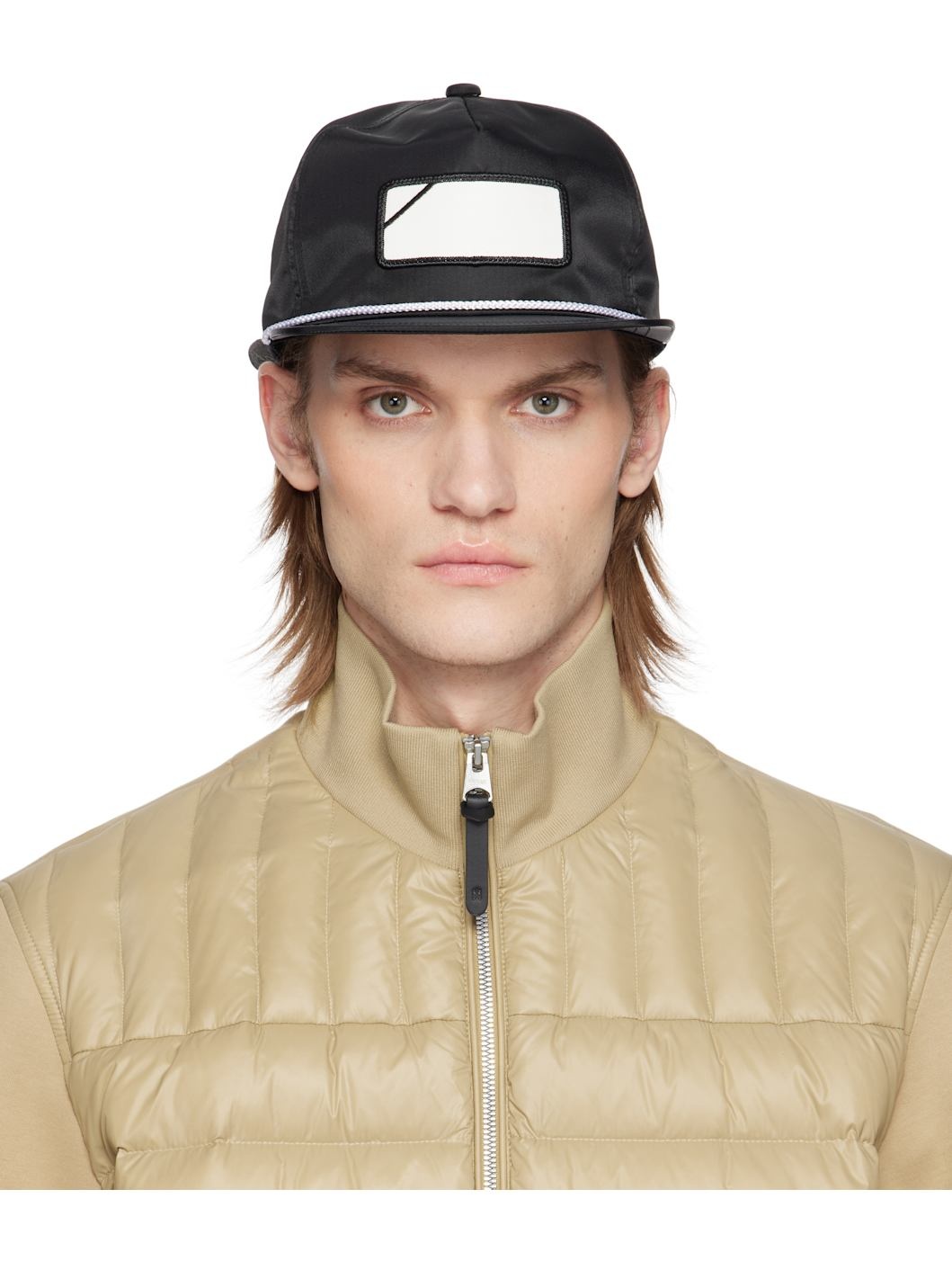 Nylon twill cap in black. · Graphic patch at face · Braided piping at flat brim · Logo embroidered at back face · Faux-leather cinch fastening · Structured mesh panel at interior · Plain-woven browband · Twill lining · Logo-engraved black hardware Supplier color: Black 100% nylon. Made in Japan 252241M139002