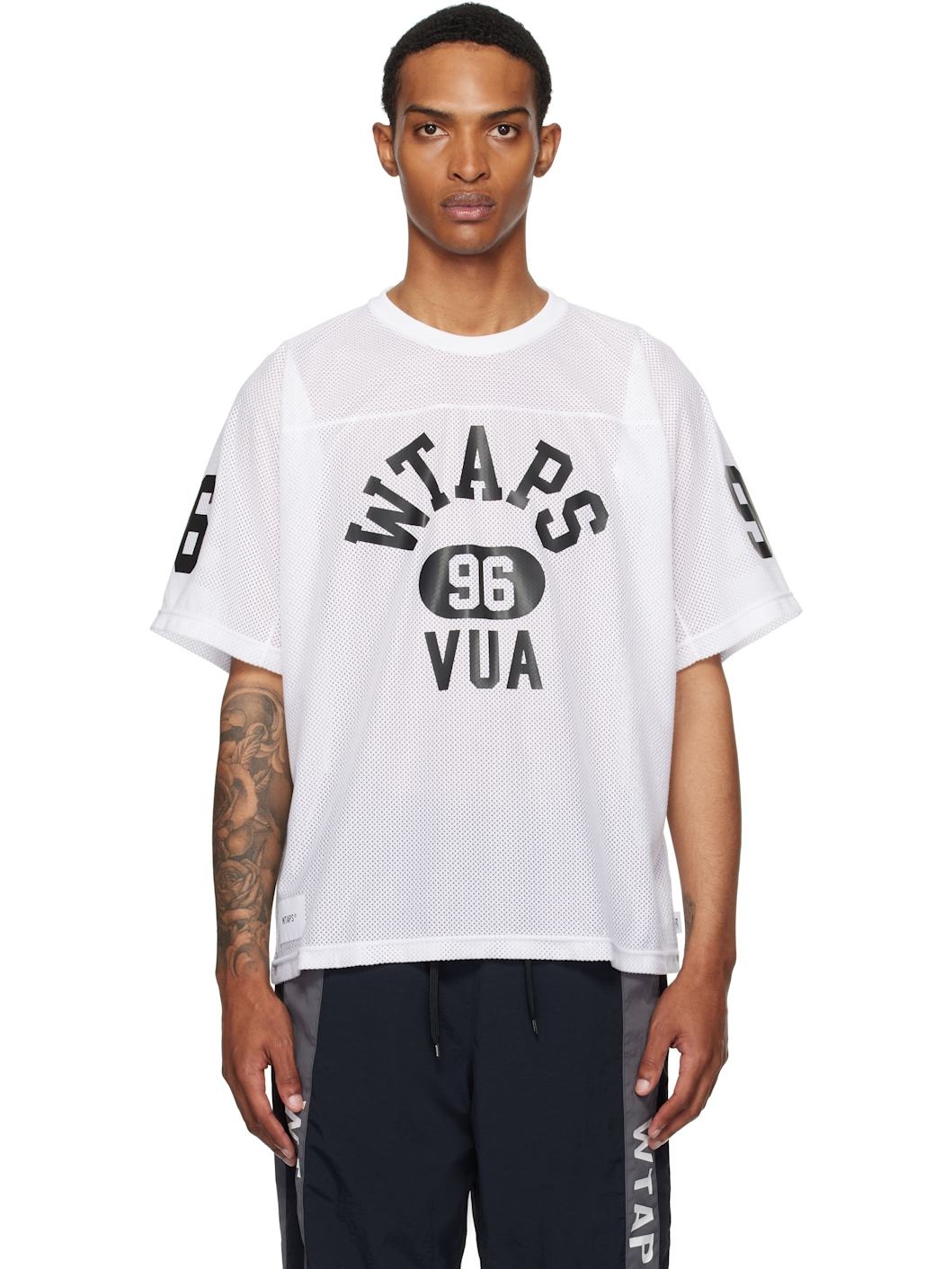 Mesh top. · Rib-knit crewneck · Logo printed at front · Text printed at front, sleeves, and back · Logo patch at front · Logo flag at side seam · Yoke sleeves Supplier color: White 100% polyester. Made in Japan 252241M213004