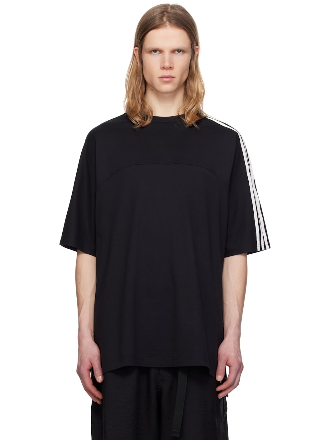 Cotton jersey T-shirt. · Crewneck · Concealed vents at front panel · Yoke sleeves · Stripes at sleeve · Logo bonded at back Supplier color: Black 100% cotton. Made in Thailand 251138M213013