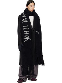 Rectangular rib-knit scarf. · Logo embroidered at length · Fringed detailing at ends · L117" x W13" Supplier color: Black 100% acrylic. Made in Taiwan, China 252138M150000