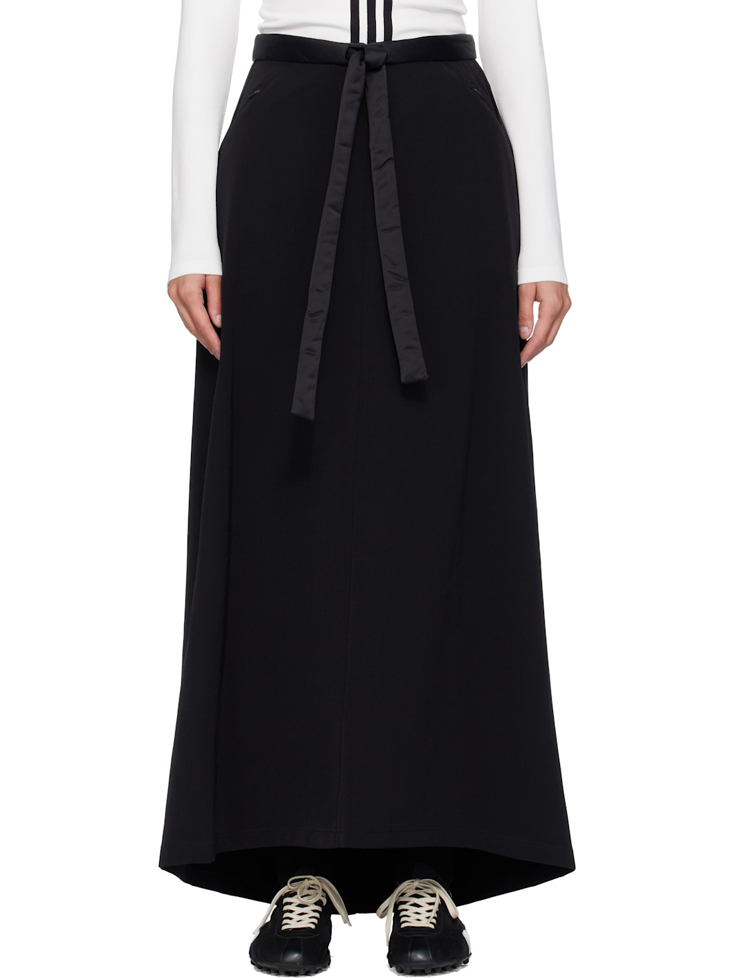 Stretch nylon-blend canvas midi skirt. · Padded satin drawstring at satin waistband · Two-pocket styling · Bonded logo at front · Zip closure with hook-eye at back waist Supplier color: Black 77% nylon, 16% lyocell, 7% elastane. Made in Viet Nam 252138F092000