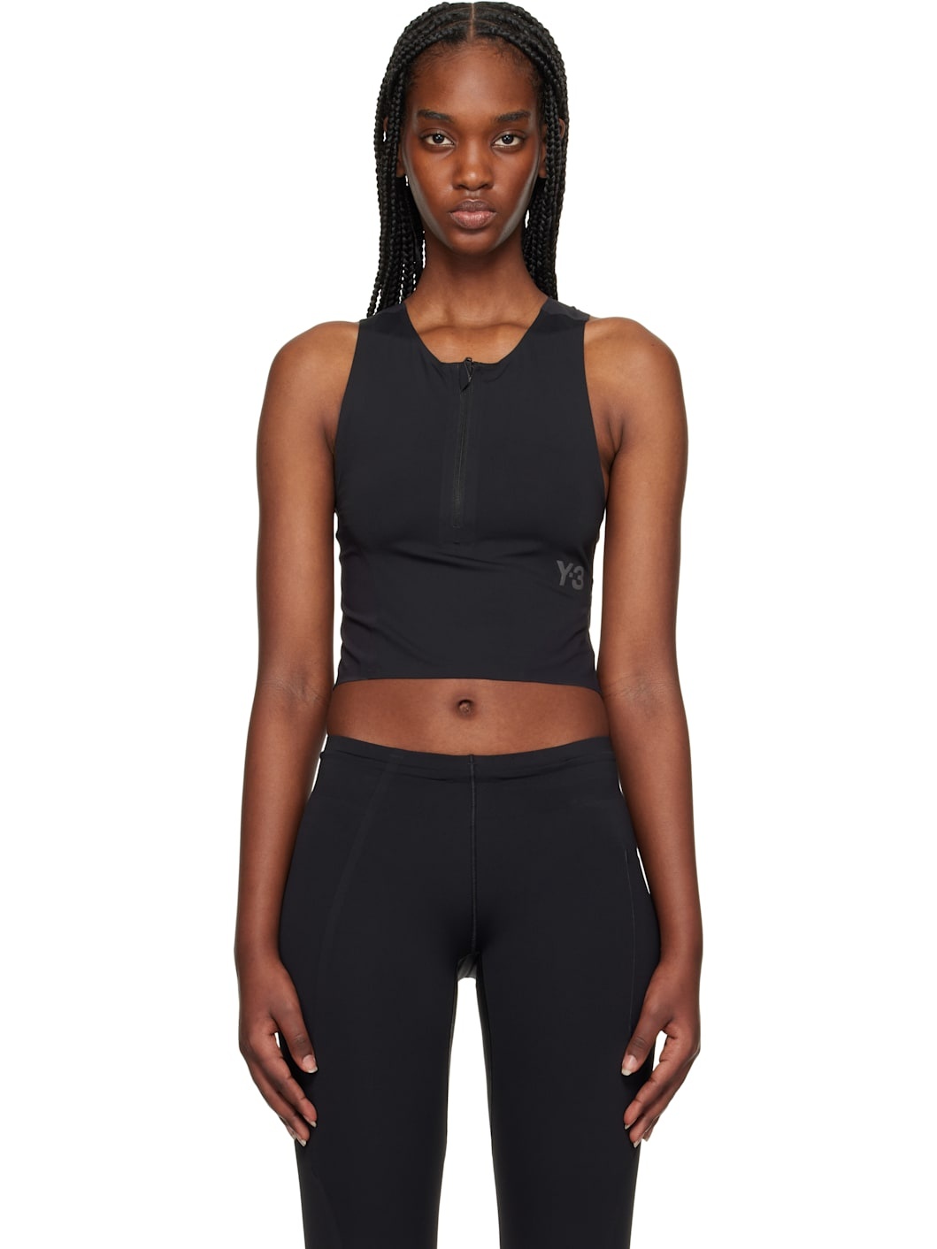 Stretch nylon jersey sport top. · Scoop neck · Half-zip closure · Logo bonded at front and back · Cutout at modified racer back Supplier color: Black Body 1: 84% polyamide, 16% elastane. Body 2: 77% polyamide, 23% elastane. Made in Viet Nam 251138F511001