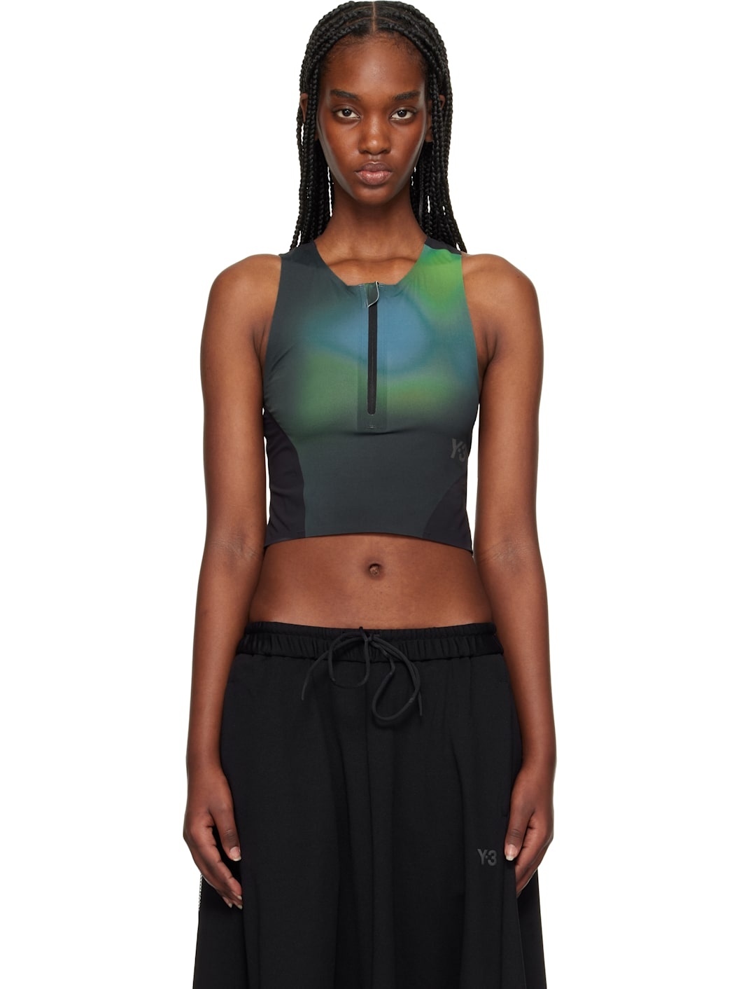 + Y-3 cropped stretch recycled tank Blue