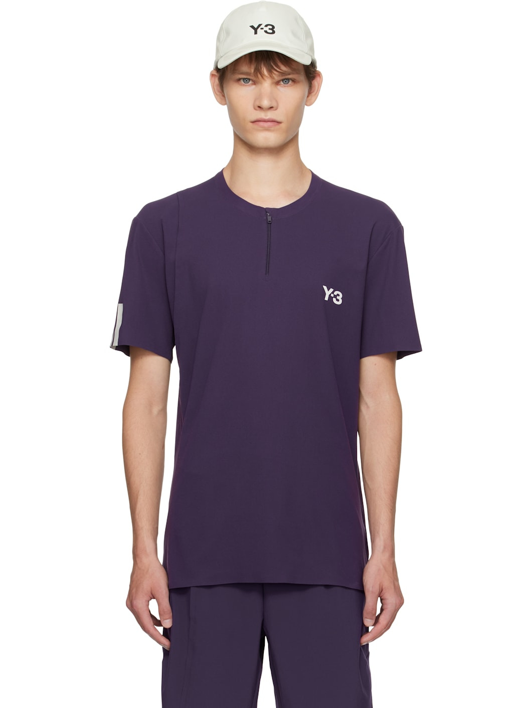 Recycled nylon-blend jersey T-shirt. · Crewneck · Half-zip closure · Bonded logo and exposed seam at chest · Stripes bonded at sleeve Part of the US Open capsule. Supplier color: Aurora plum 57% recycled polyamide, 43% polyester. Made in Viet Nam 252138M213001