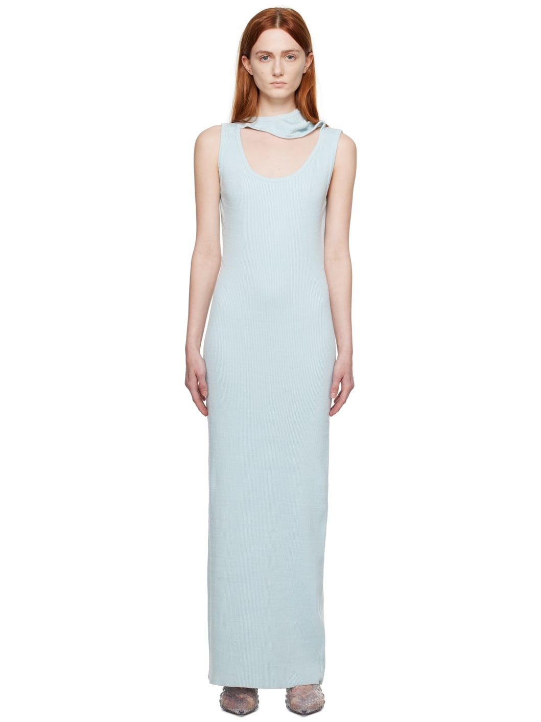 Rib knit stretch cotton-blend dress. · Crewneck and scoop neck · Cutout at shoulder Supplier color: Light blue 87% cotton, 12% polyamide, 1% elastane. Made in Italy 231893F055009