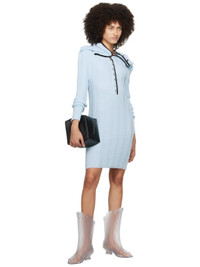 Rib knit merino wool dress. Ruching throughout. · Detachable curb chain hardware at Y-neck · Button fastening at front Supplier color: Baby blue 100% merino wool. Made in Portugal 232893F052001