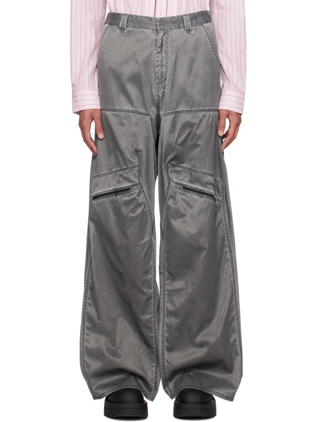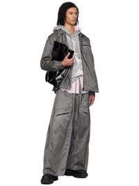Stretch nylon taffeta trousers. Fading throughout. · Belt loops · Partially elasticized waistband · Four-pocket styling · Zip-fly · Gathering and logo bonded at front · Zip pocket at knees · Partially lined Supplier color: Washed black 96% polyamide, 4% polyurethane. Made in Poland 241893M191005