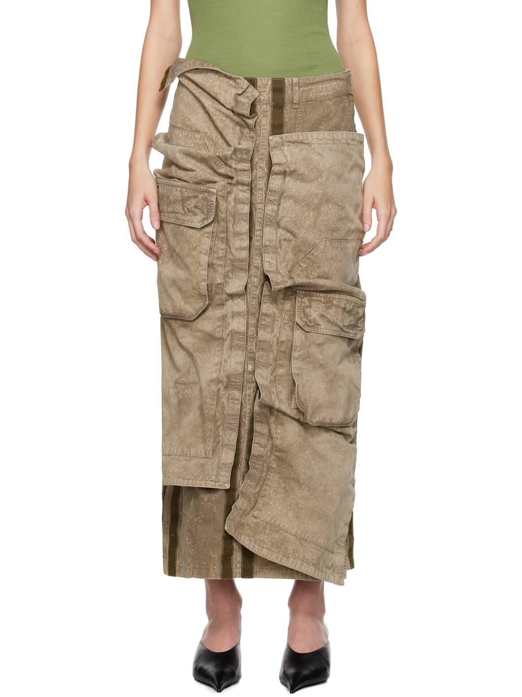 Cotton twill skirt. Acid wash effect throughout. · Paneled construction · Belt loops · Four-pocket styling · Zip-fly · Detachable velcro panels at front for alternate styling · Cargo pocket at sides · Leather logo patch at back waistband Supplier color: Washed khaki 100% cotton. Made in Portugal 242893F092000