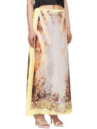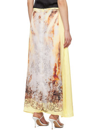 Polyester satin skirt. · Graphic printed at front and back · Concealed zip closure at back Supplier color: Yellow rust 100% polyester. Made in Portugal 241893F093002