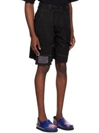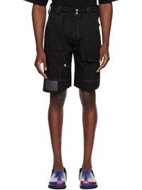 Garment-dyed non-stretch denim shorts. · Belt loops · Four-pocket styling · Zip-fly · Press-stud panel at front · Patch pocket and logo patch at panel · Contrast stitching in white Supplier color: Black 100% cotton. Made in United Kingdom 242182M193004