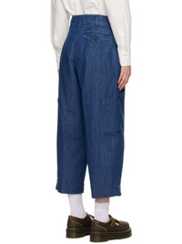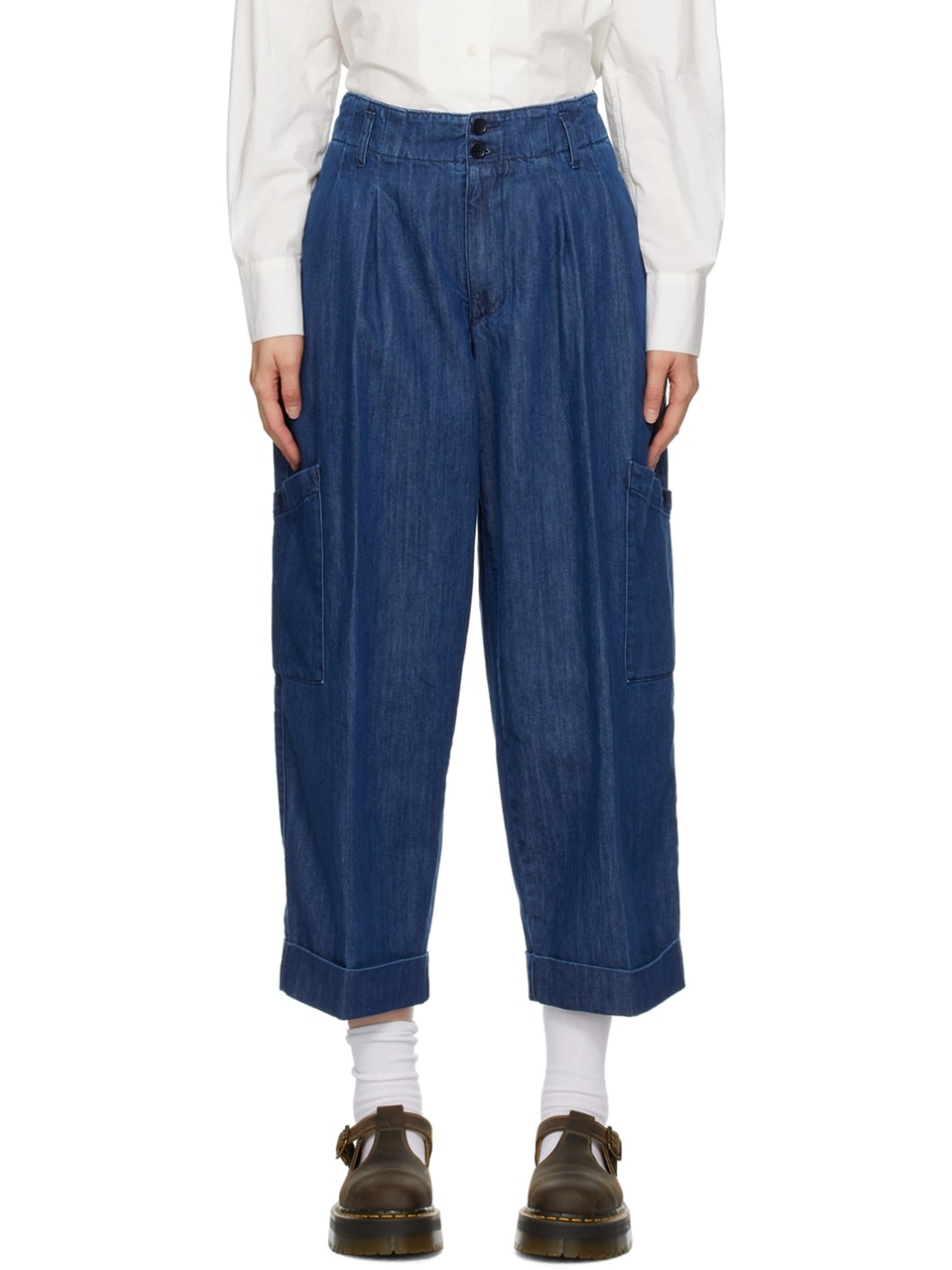 Wide-leg garment-dyed non-stretch recycled cotton-blend denim jeans. · High-rise · Belt loops · Three-pocket styling · Zip-fly · Knife pleats at front waistband · Cargo pocket at outseams · Rolled cuffs · Corozo hardware Supplier color: Washed indigo
