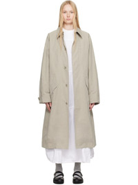 Waxed cotton-blend canvas trench coat. · Spread collar · Concealed button closure · Zip pocket at chest · Flap pockets at front · Raglan sleeves · Adjustable button tab at cuffs · Twin vents at back hem · Patch pocket and button tab at interior · Full satin lining Supplier color: Stone Body: 45% cotton, 39% polyester, 16% polyamide. Lining: 100% viscose. Made in Poland 251161F067000